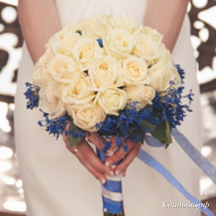 белые розы на собственных стеблях с лимониумом синим.