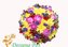 Яркий контрастный букет на портручке. Пионовидные розочки с хризантемами, с добавлением декоративной зелени.