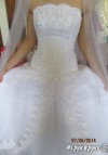 Свадебное платье. В хорошем состоянии. Одевали один раз. Прошло химчистку, размер 46(М). Цвет - белый. Украшение: стразы, кружевная вышивка, жемчуг. Возможен торг и примерка. Продается без колец.