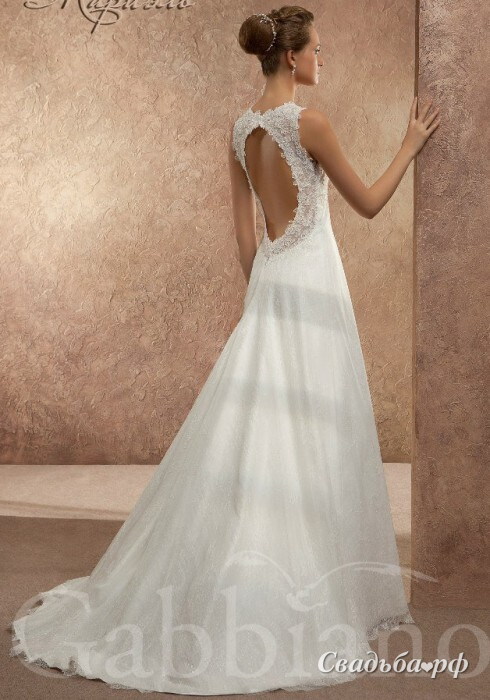 Кружевное платье А-силуэта со шлейфом. Спинка открытая.