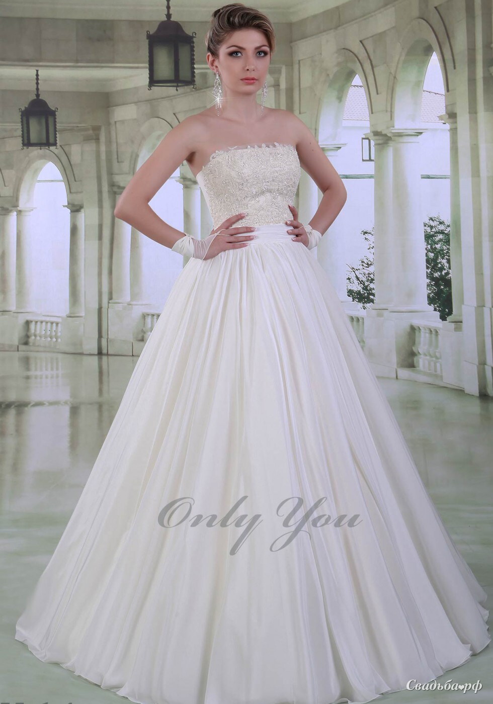 Нежнейшая струящаяся юбка из шелка и красивый корсет, украшенный бисерным кружевом – отличное сочетание! Не длинный короткий шлейф удлинит силуэт. В этом платье вы будете похожи на сказочную принцессу.