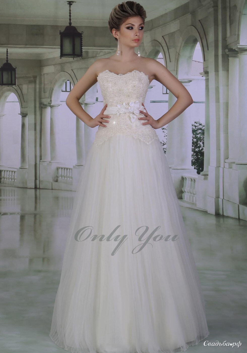 Весьма нежное и необычное свадебное платье. Корсет необычной формы украшен гипюром, густо расшитым бисером, бусинами и стразами. Юбка из легкой струящейся ткани зрительно удлиняет силуэт. в наличии с маечкой, украшенной, расшитым бисером кружевом.