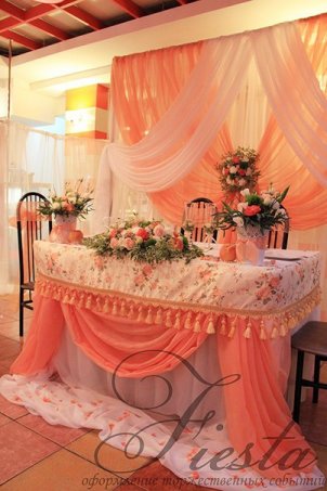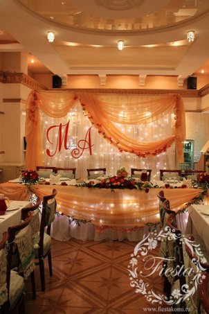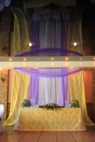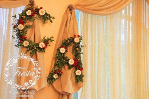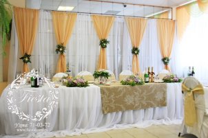 При заказе комплексного оформления (декор тканями и цветами) - букет невесты стоимостью 5000 руб. В ПОДАРОК!!!