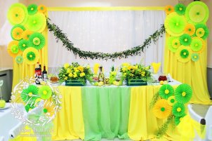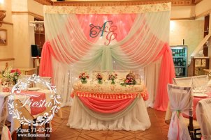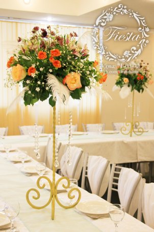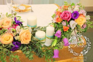 • Свадебное оформление (украшение) зала живыми цветами, тканями, подсветкой. Выездная регистрация, сладкий стол (Candy Bar).