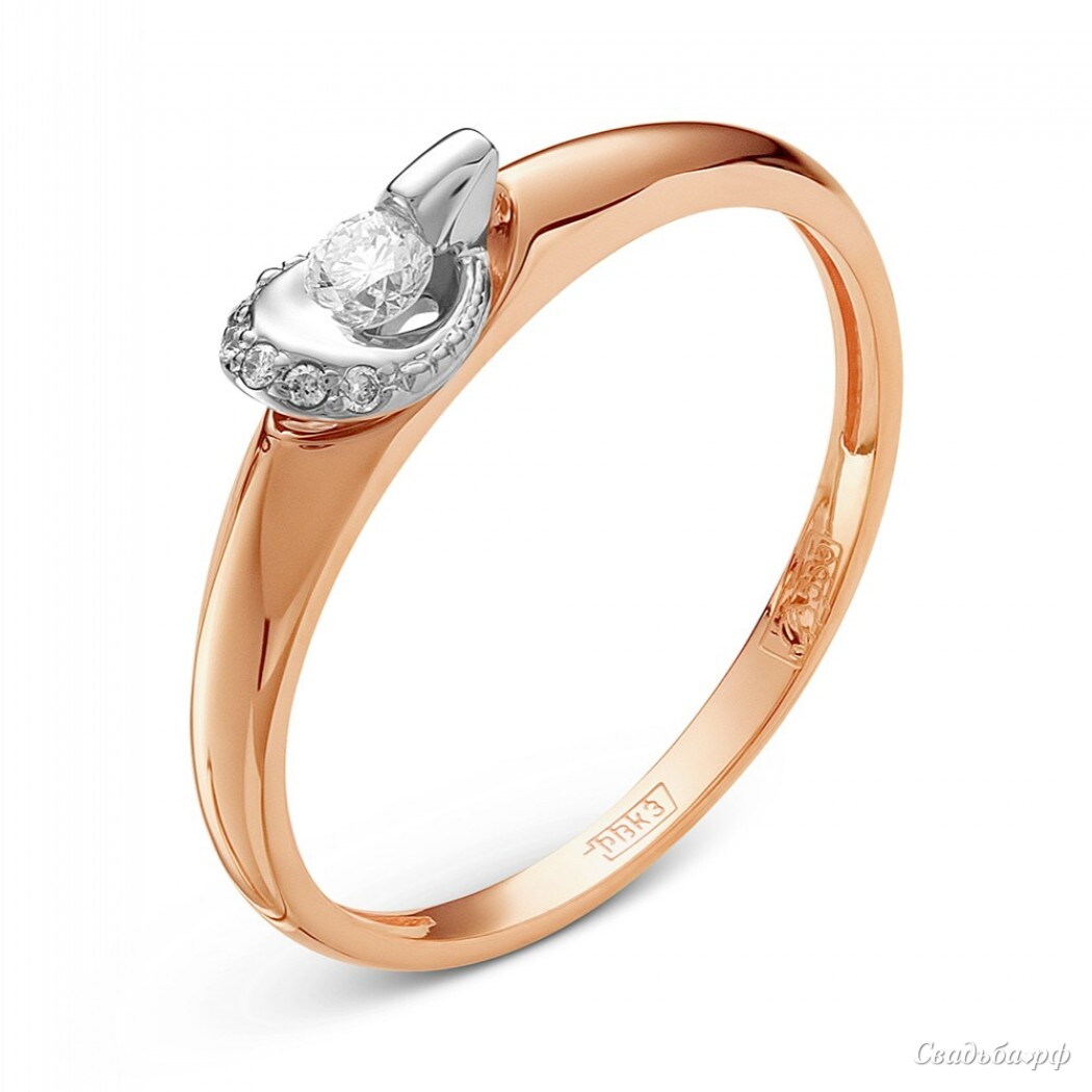 Кольцо арт. 1-444, вставка: 1бр КР-57 0,097 3/5А, 5бр КР-57 0,022 4/5А, размер 17,0